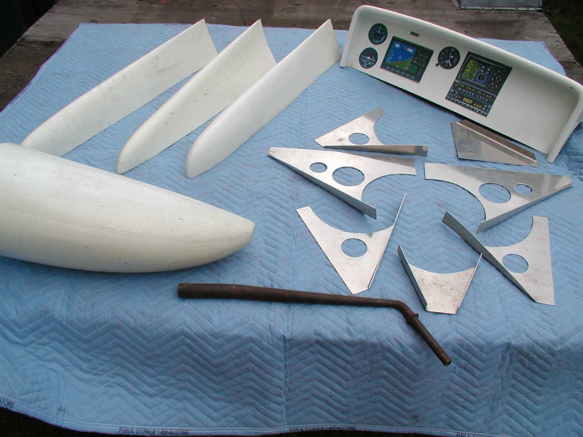tail cone, tail-feather tips, a formed nosegear strut, and an instrument
