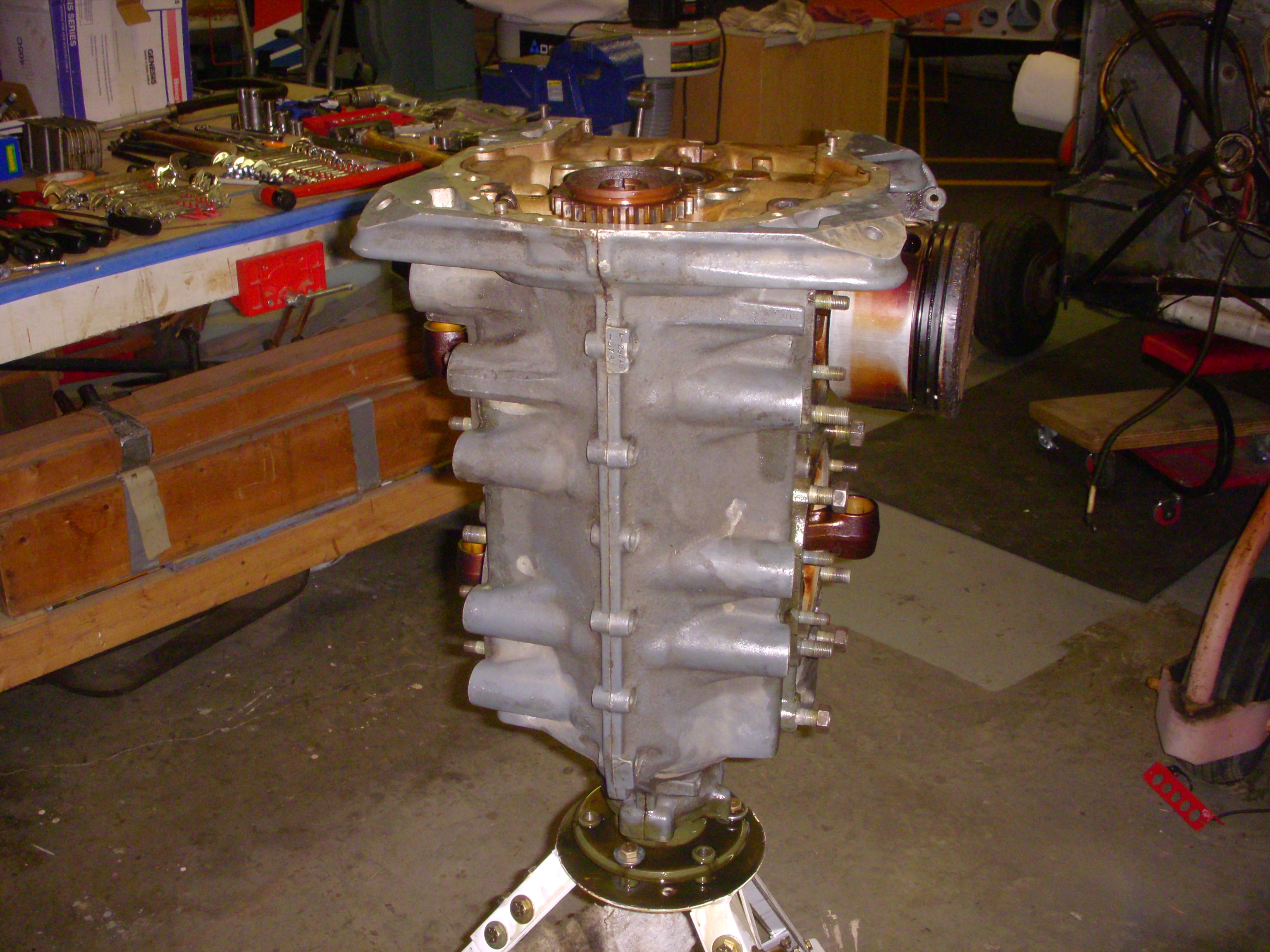 The accessory case, gears, shafts, and oil pump are gone, and all the