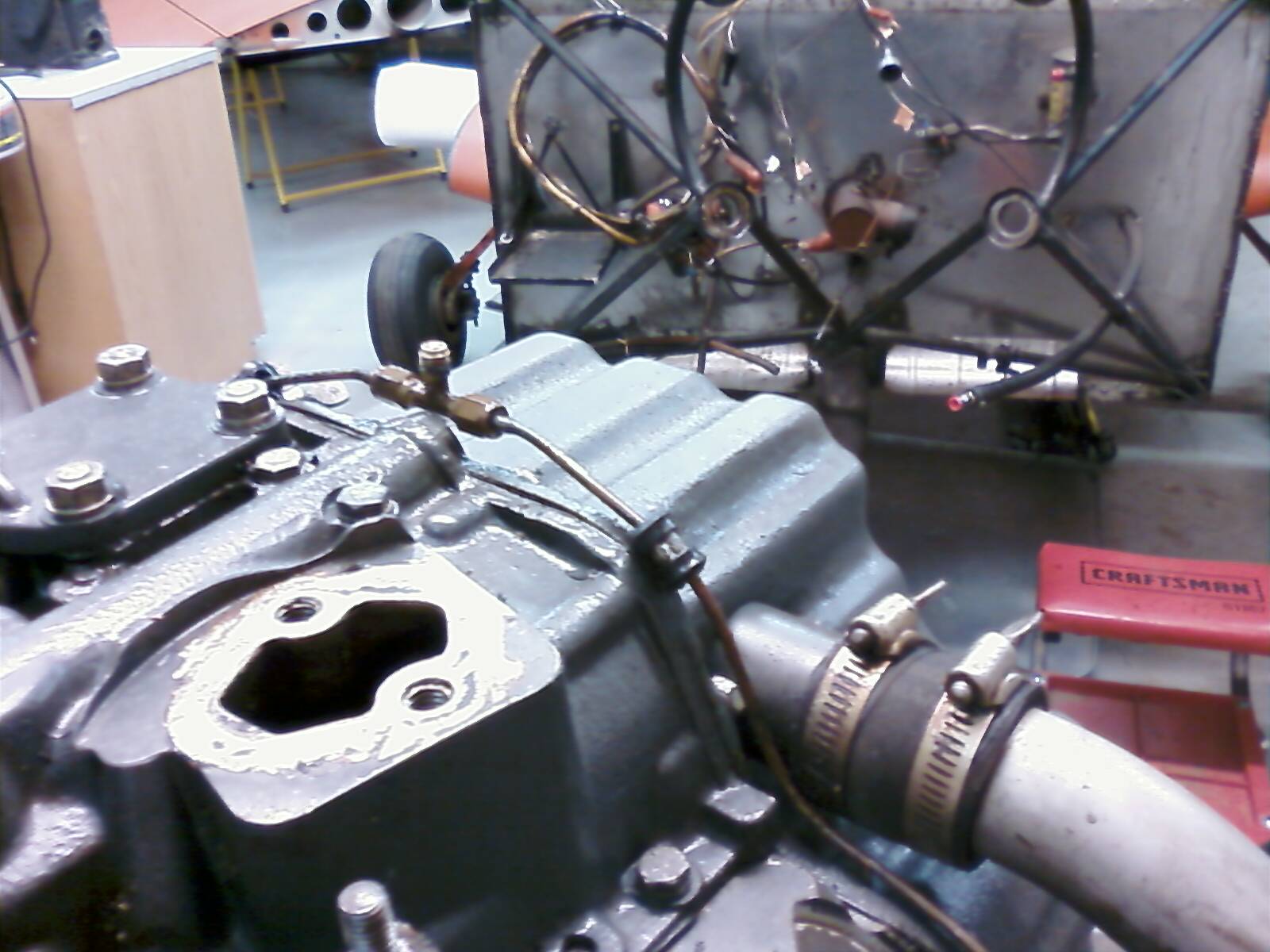 A shot of the accessory case showing the orientation of the oil cooler hose