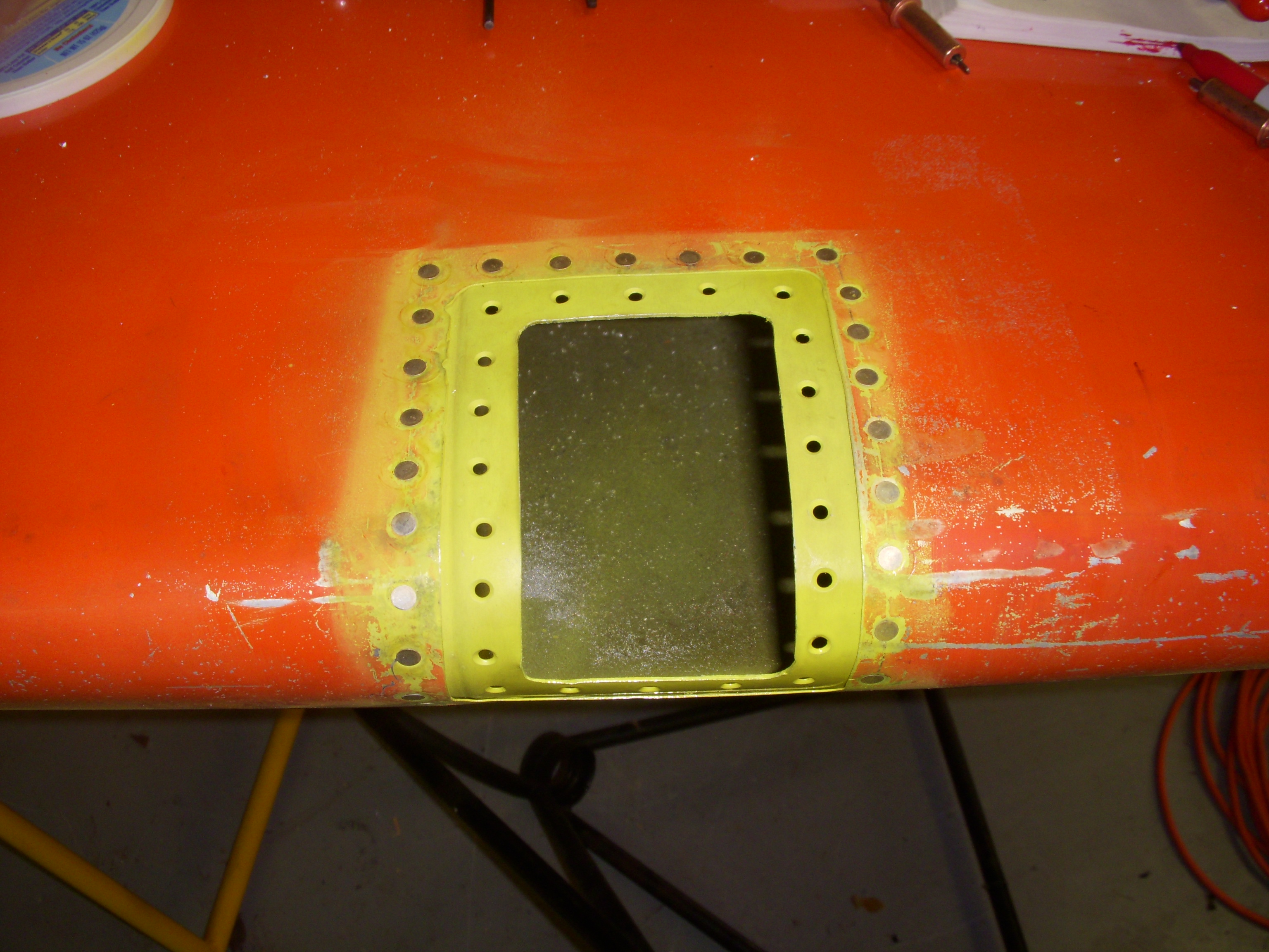 epoxy; bare aluminum on the original still-painter substrate.  The rivet layout neither conforms to AC 43-13 1B nor chapter 20 of the AA-5 maintenance