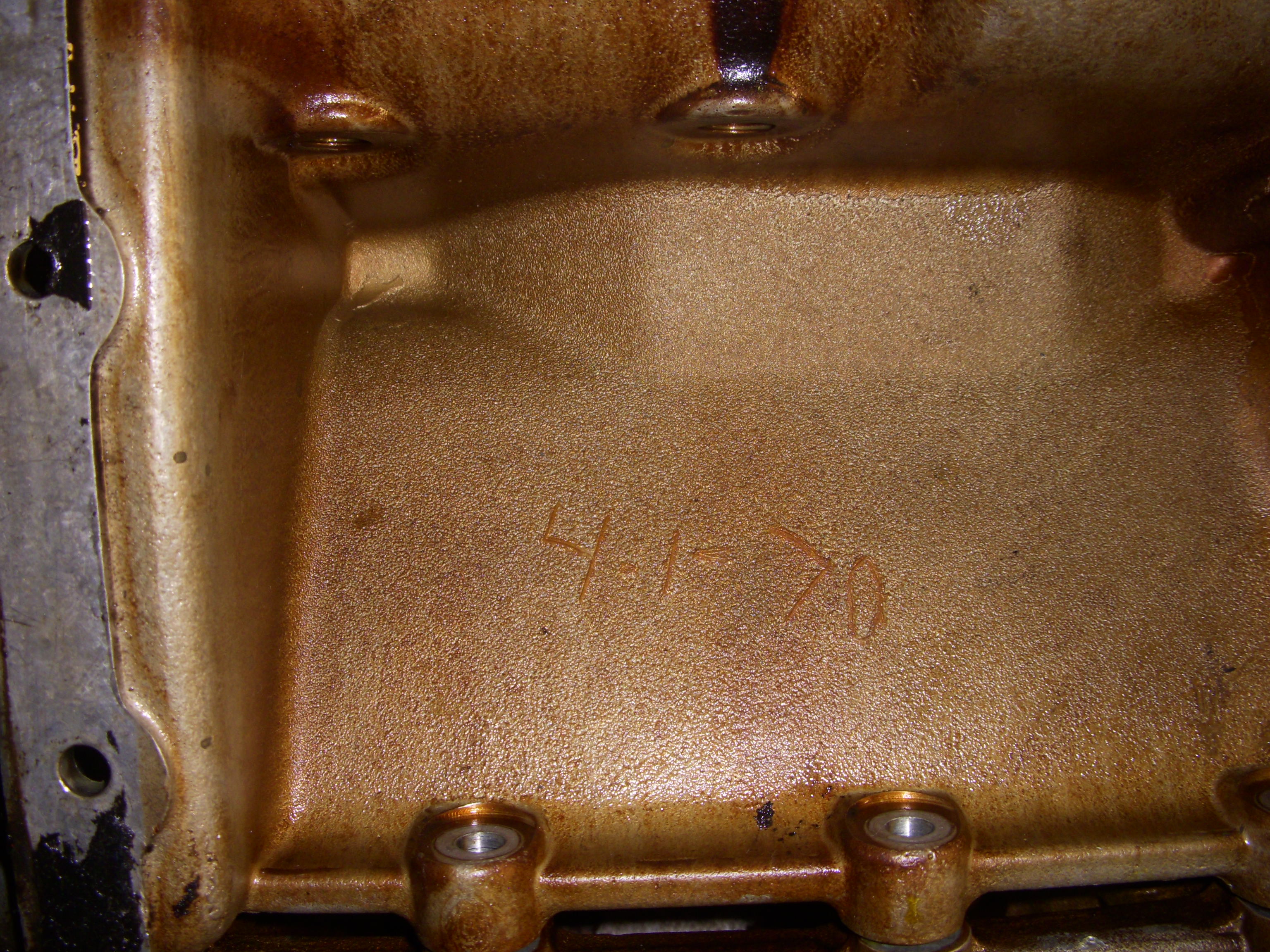 removing the oil pan, the date 4-1-70 could be clearly seen scratched into