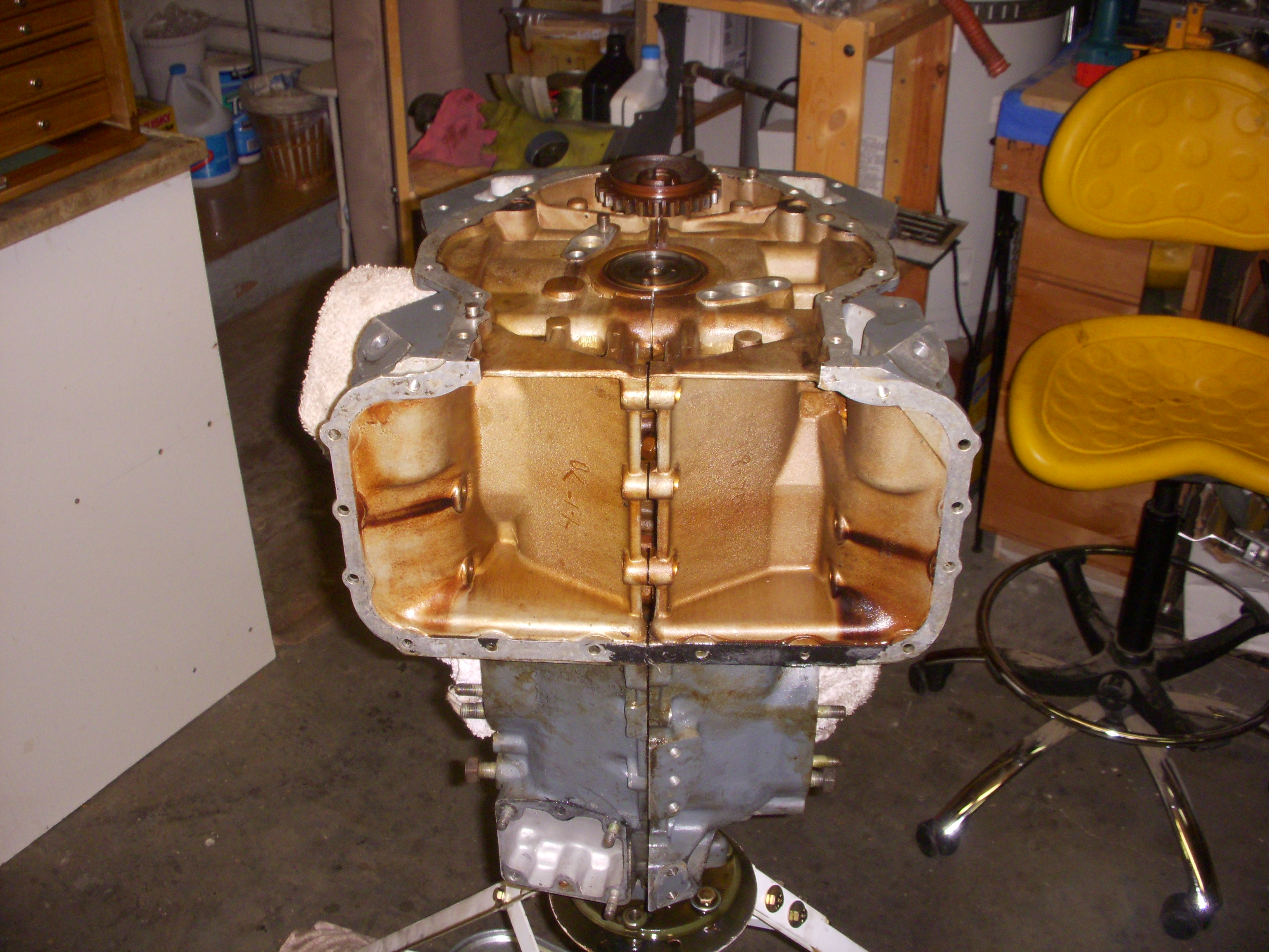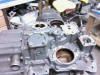 The accessory case, gears, shafts, and oil pump are gone, and all the
