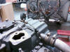 Oil pan off.  Accessory case and all backbone bolts are next. |